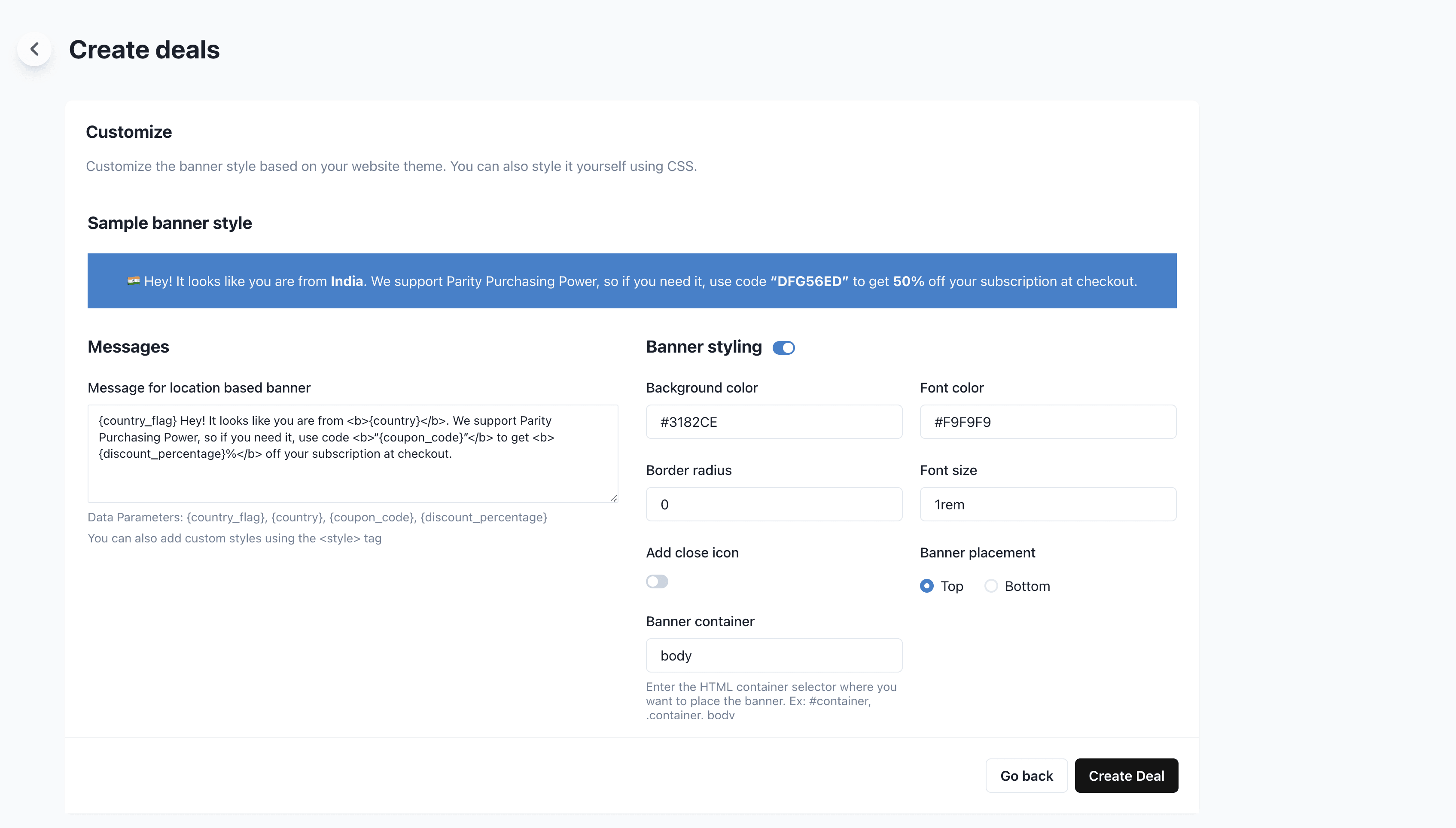 Finally, we’re all setup over at ParityDeals. Just copy the script to their banner and embed it on your site. You’re now done 👏🏼